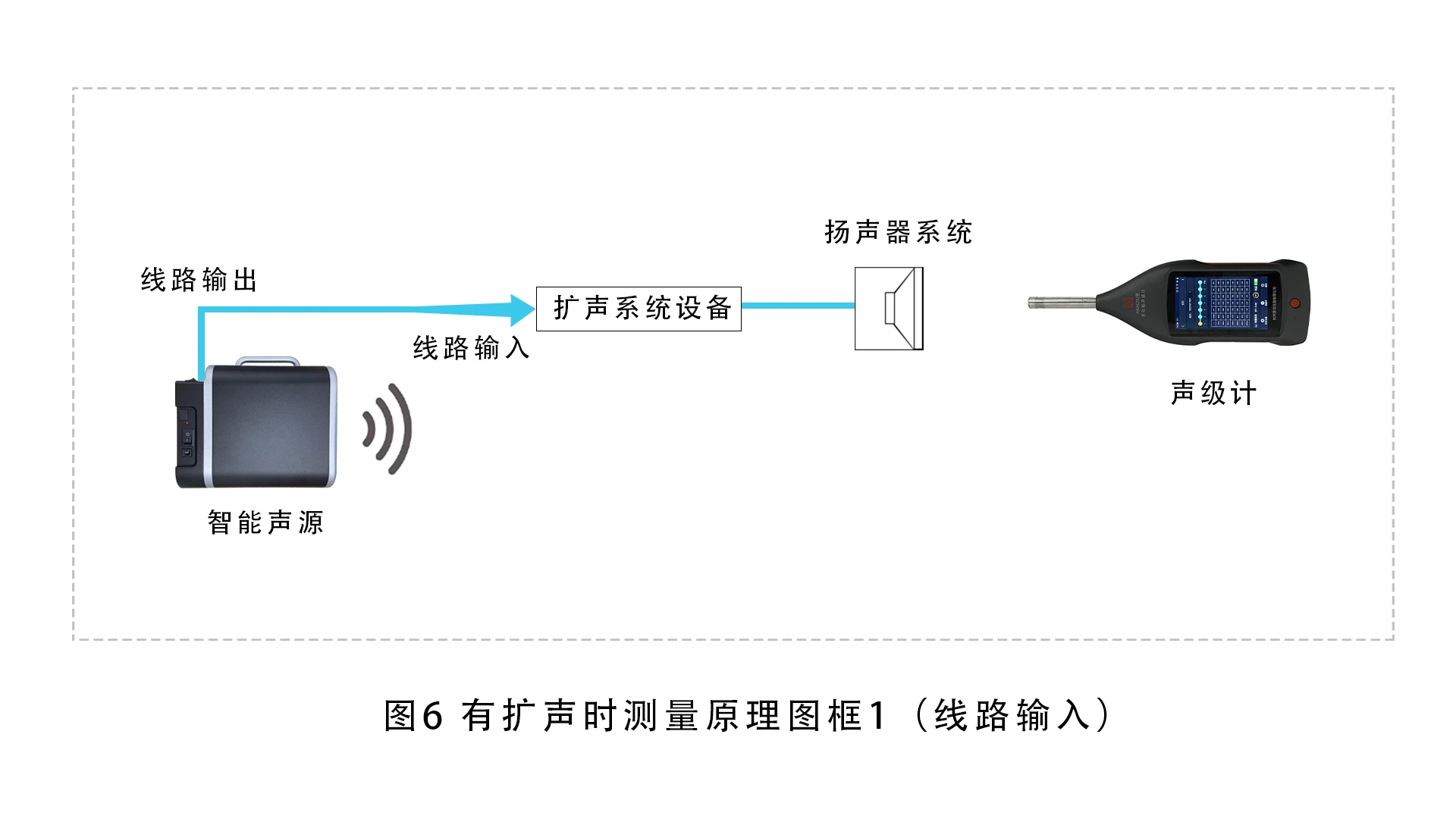 如果被测场所内扩声系统不含系统传声器而是直接通过播放器播放音频,则将智能音箱中线路输出的电信号输入至扩声系统的线路输入,测试信号通过扩声调音台线路输入扩声系统,经扩声系统使扬声器系统发声 草莓影视,由声级计按相关标准要求测量扩声系统和声学场所的各项指标。